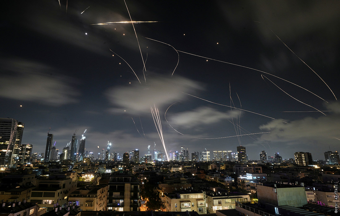 Работа системы ПРО "Железный купол" в Тель-Авиве во время ракетных атак со стороны Ирана