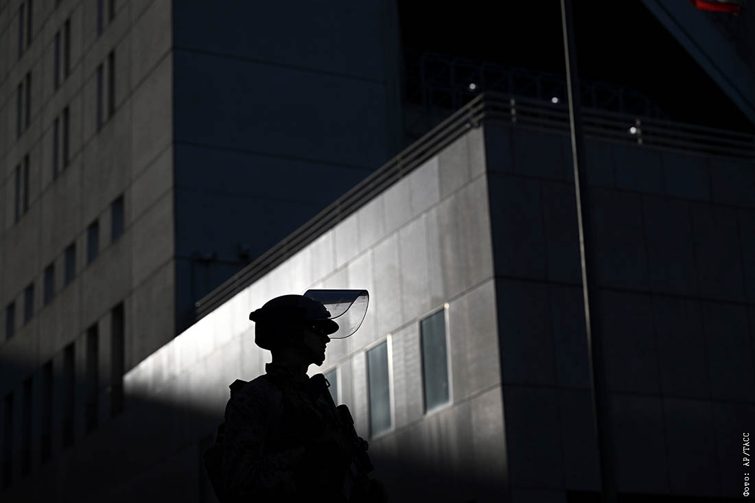 Полицейский во время беспорядков в Лос-Анджелесе