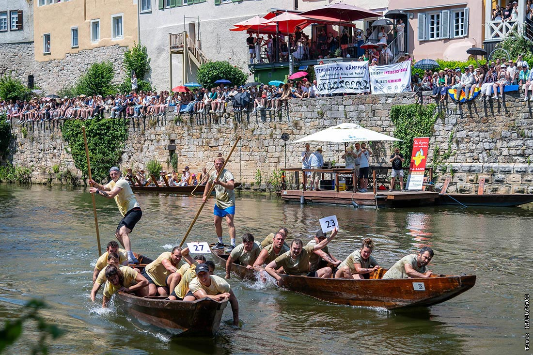 Традиционные гонки на лодках по реке Неккар в немецком Роттенбурге