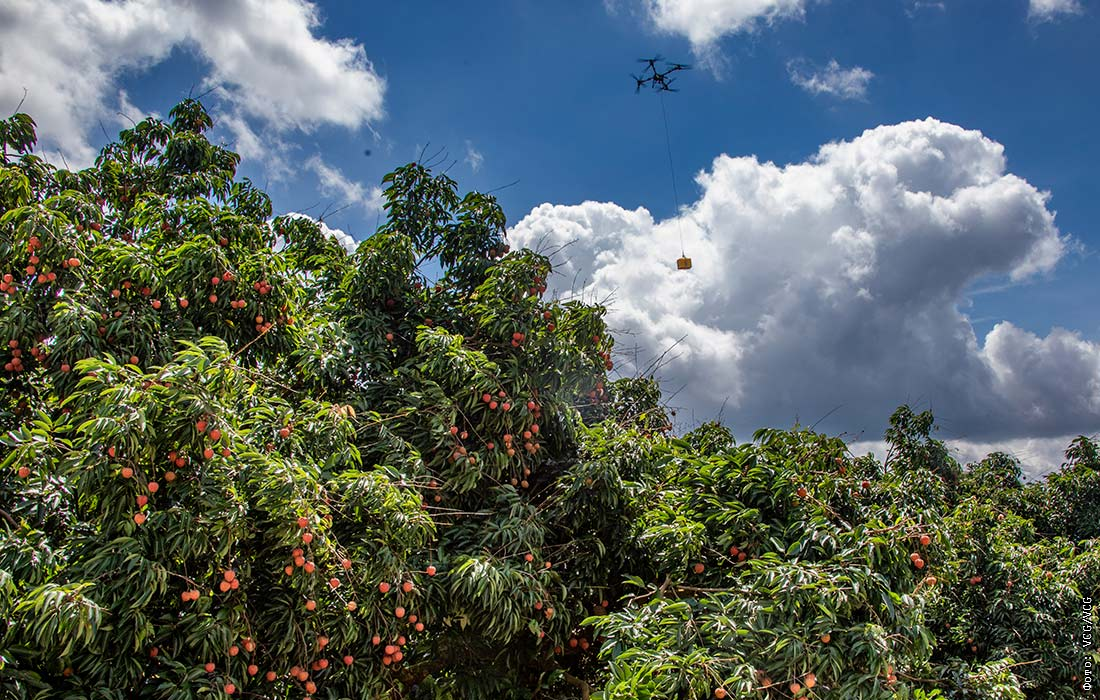 Доставка дронами урожая личи на юге Китая