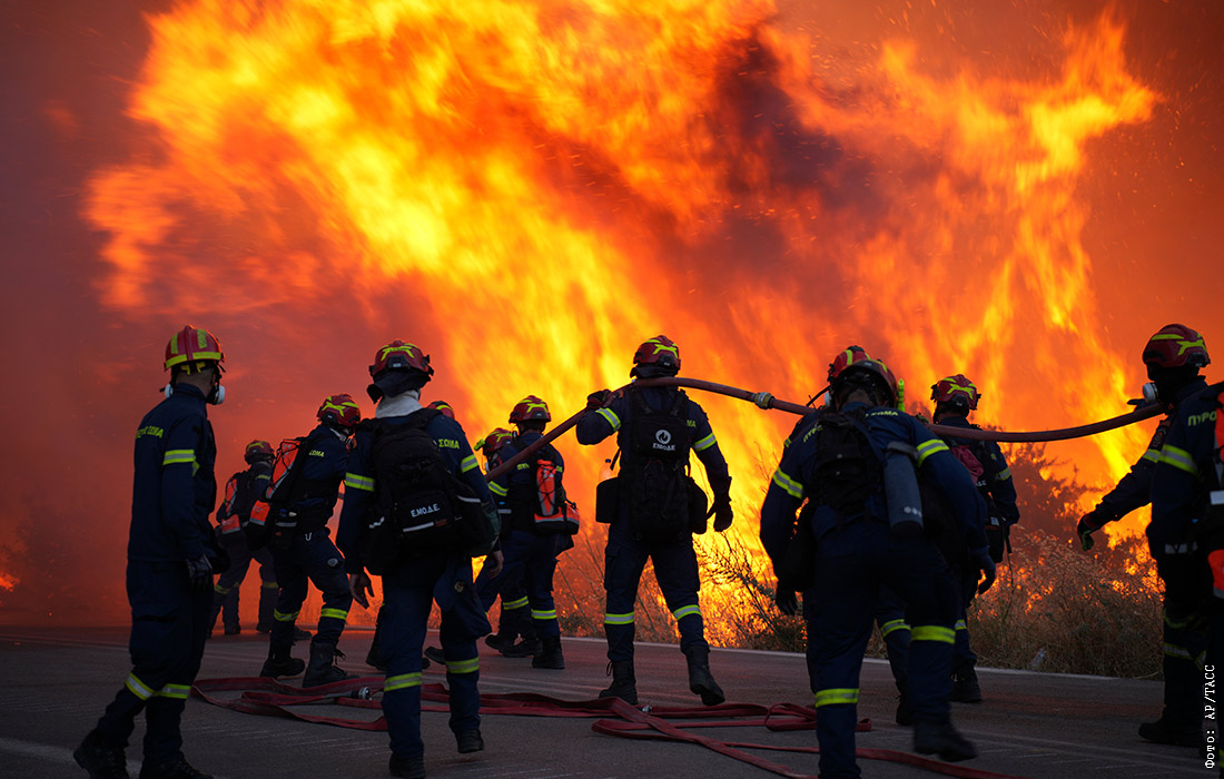 Тушение лесных пожаров на острове Хиос в Греции