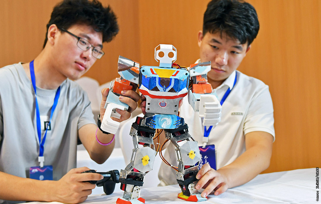 Конкурс роботов среди студентов Национального университета робототехники в китайском Яньтае