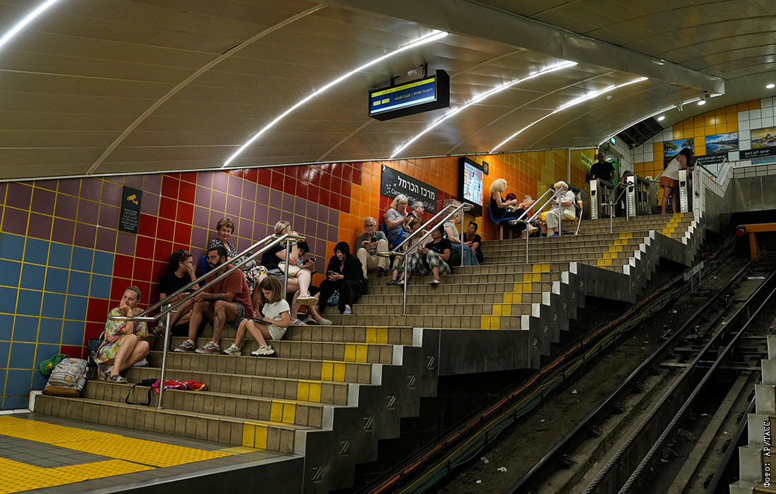Воздушная тревога в Хайфе на севере Израиля во время ракетных ударов со стороны Ирана