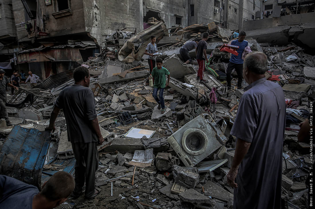 Жители ищут уцелевшие после израильских ударов вещи в Газе