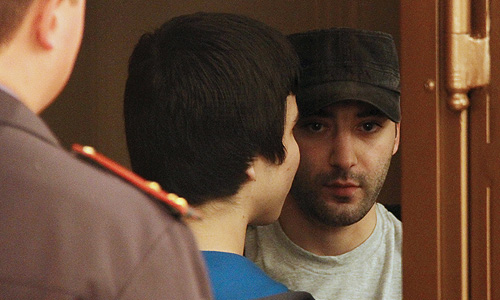 Ислам Яндиев (справа), обвиняемый по делу о теракте в аэропорту "Домодедово" 25 января 2011, в Московском областном суде.