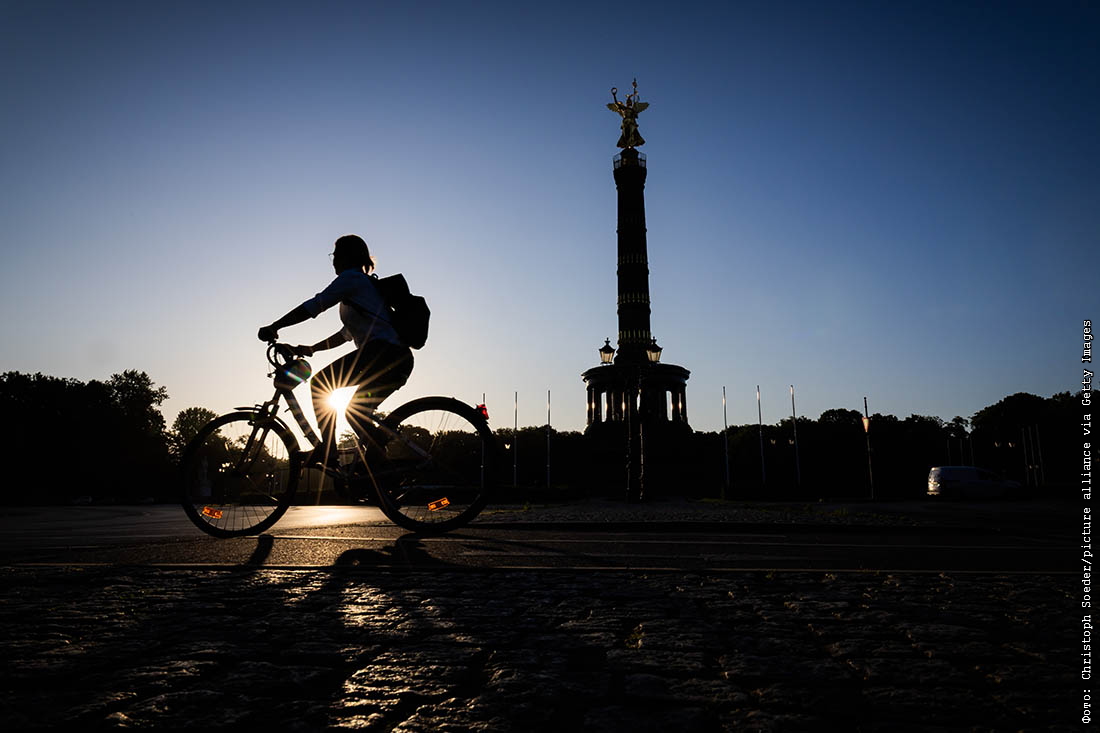 Велосипедистка утром в Берлине