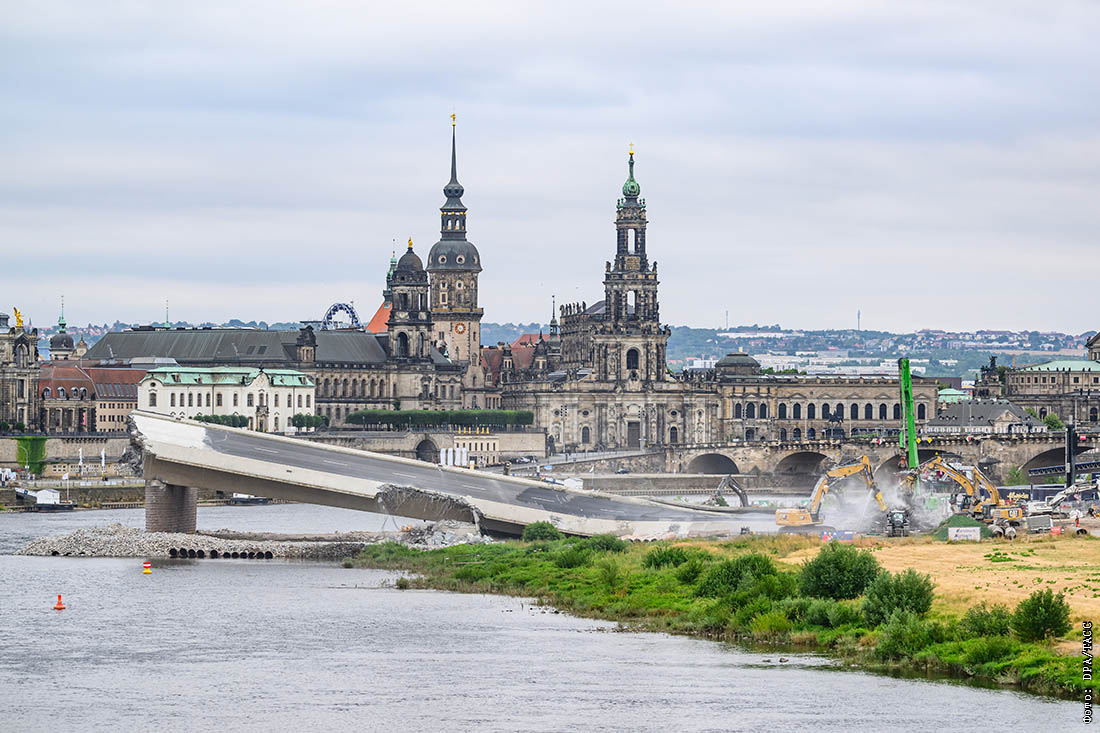 Снос моста Каролы в Дрездене после его частичного обрушения в прошлом году