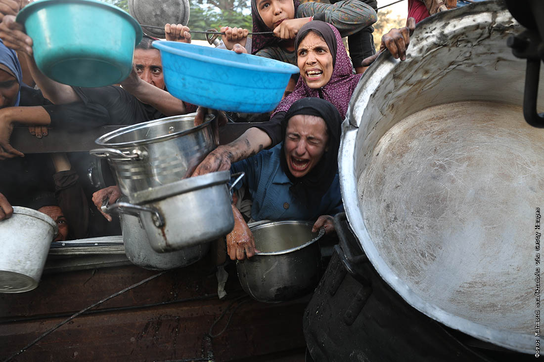 Перемещенные палестинцы в очереди за едой