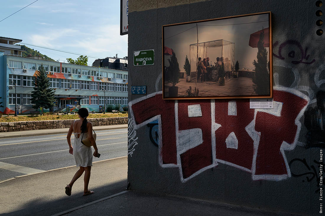 Женщина идет по улице в Сараево