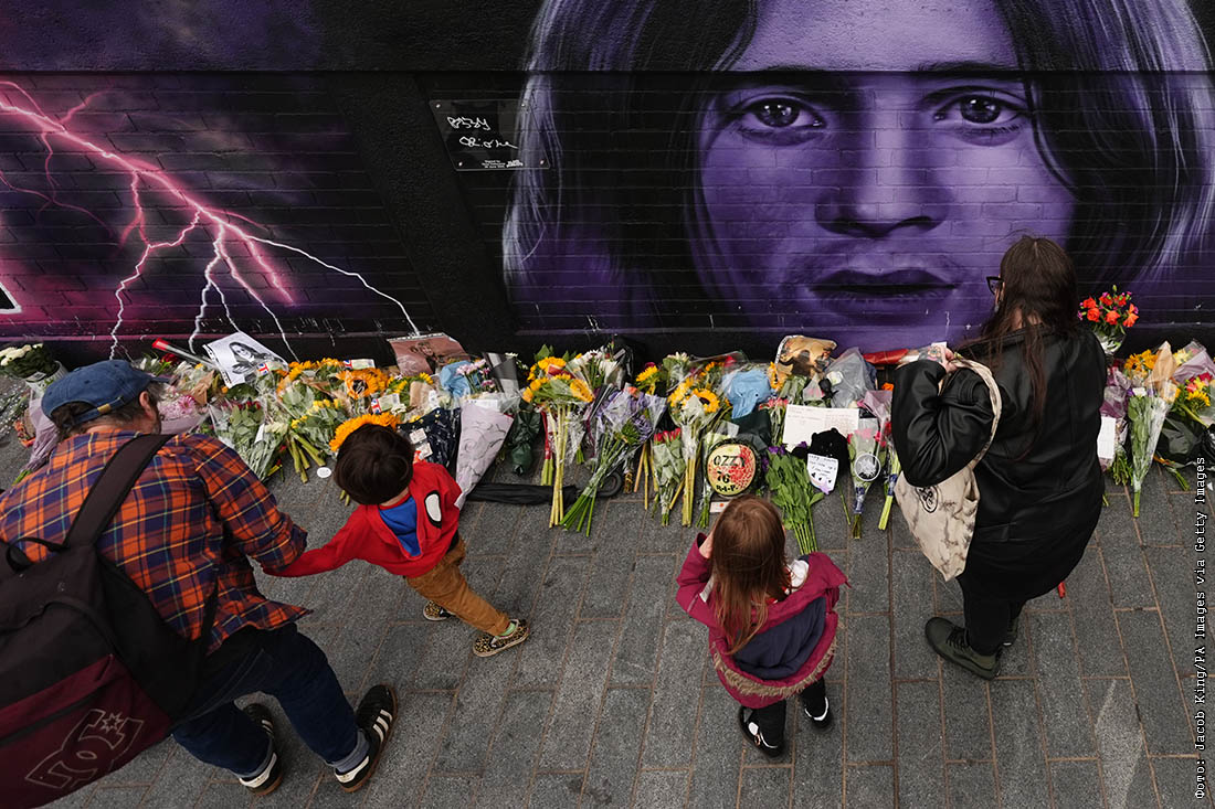 Поклонники умершего накануне Оззи Осборна несут цветы к стене группы Black Sabbath в Бирмингеме