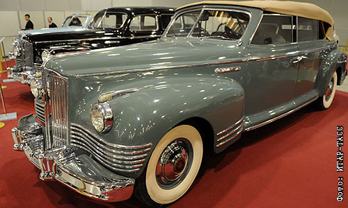 Автомобиль ЗИС-110Б (на аналогичной модели ездил Н.С.Хрущев), представленный на выставке "Олдтаймер-Галерея Ильи Сорокина". Выставка, посвященная 90-летию "Гаража Особого Назначения" (ГОН) открылась в центре "Крокус Экспо".