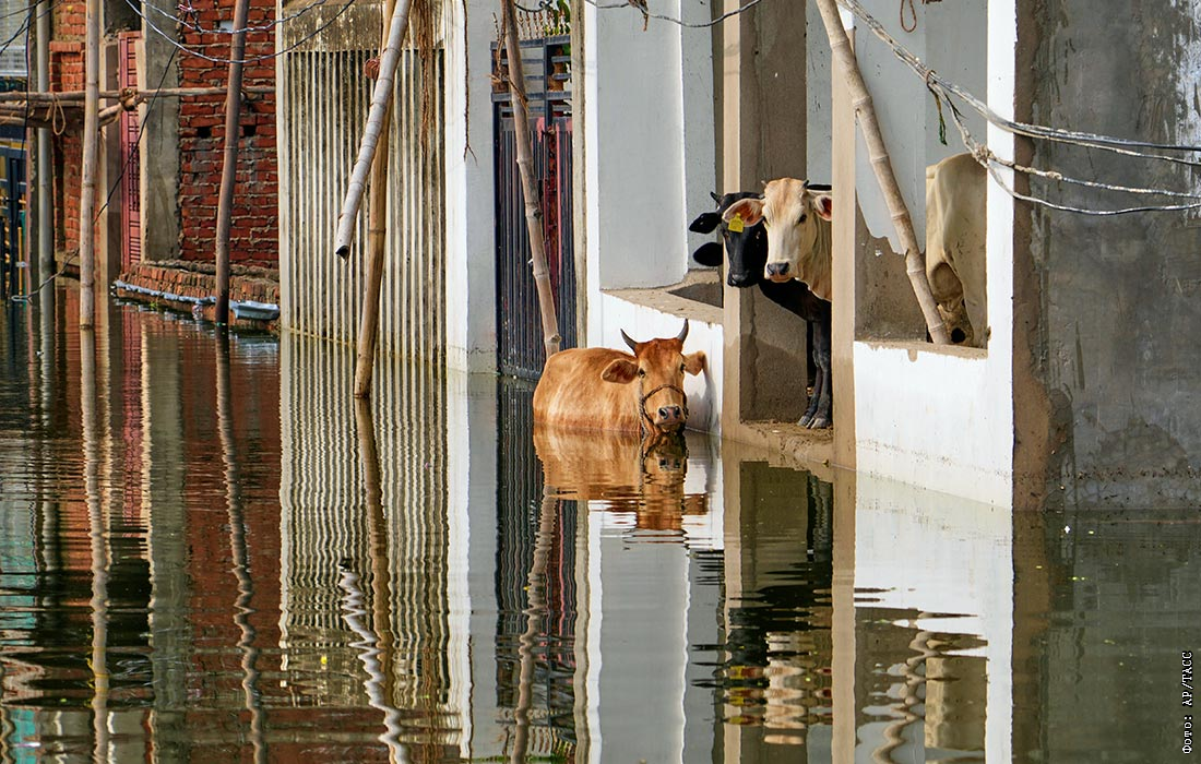 Наводнение из-за муссонных дождей вдоль реки Ганг в Индии