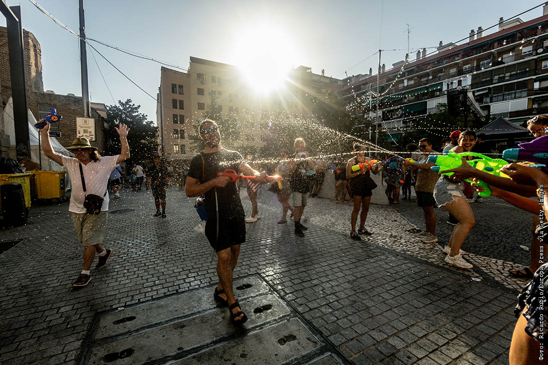 В Испании люди спасаются от жары с помощью сражений на водяных пистолетах