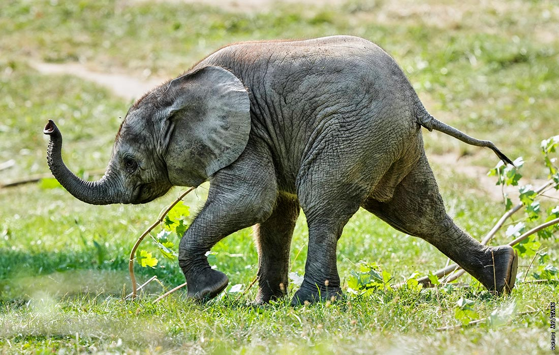 Двухмесячный слоненок Кая в зоопарке в немецком Кронберге