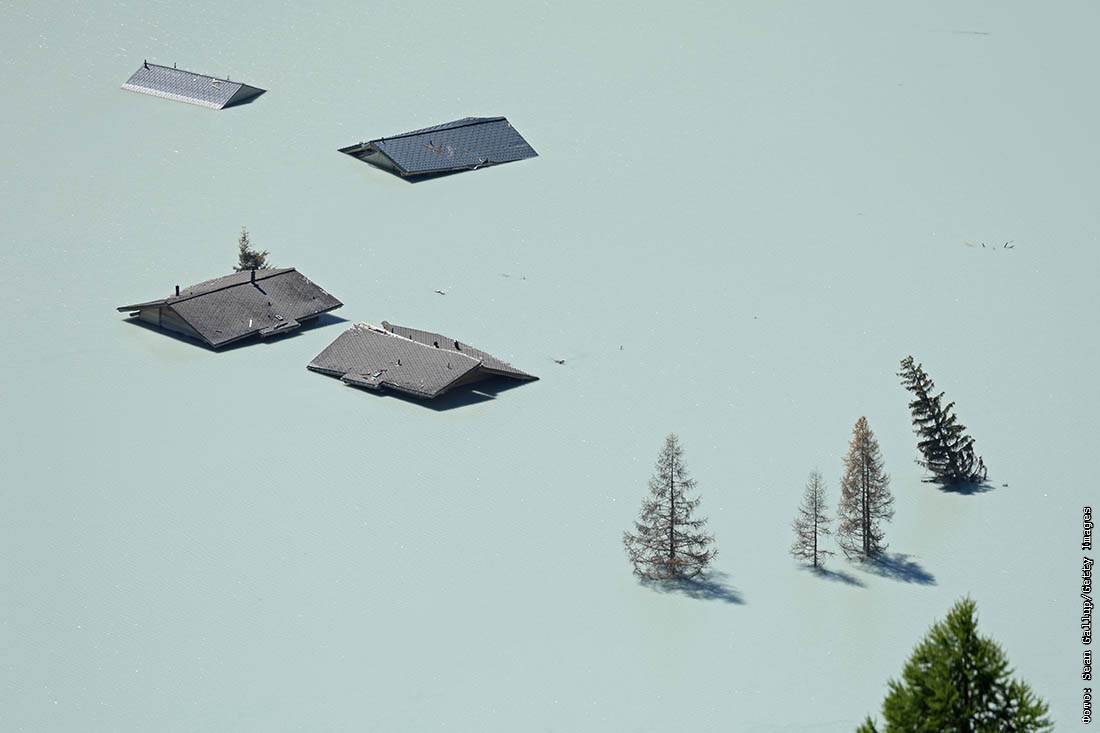 В Блаттене (Швейцария) оползень перекрыл реку, река затопила деревню