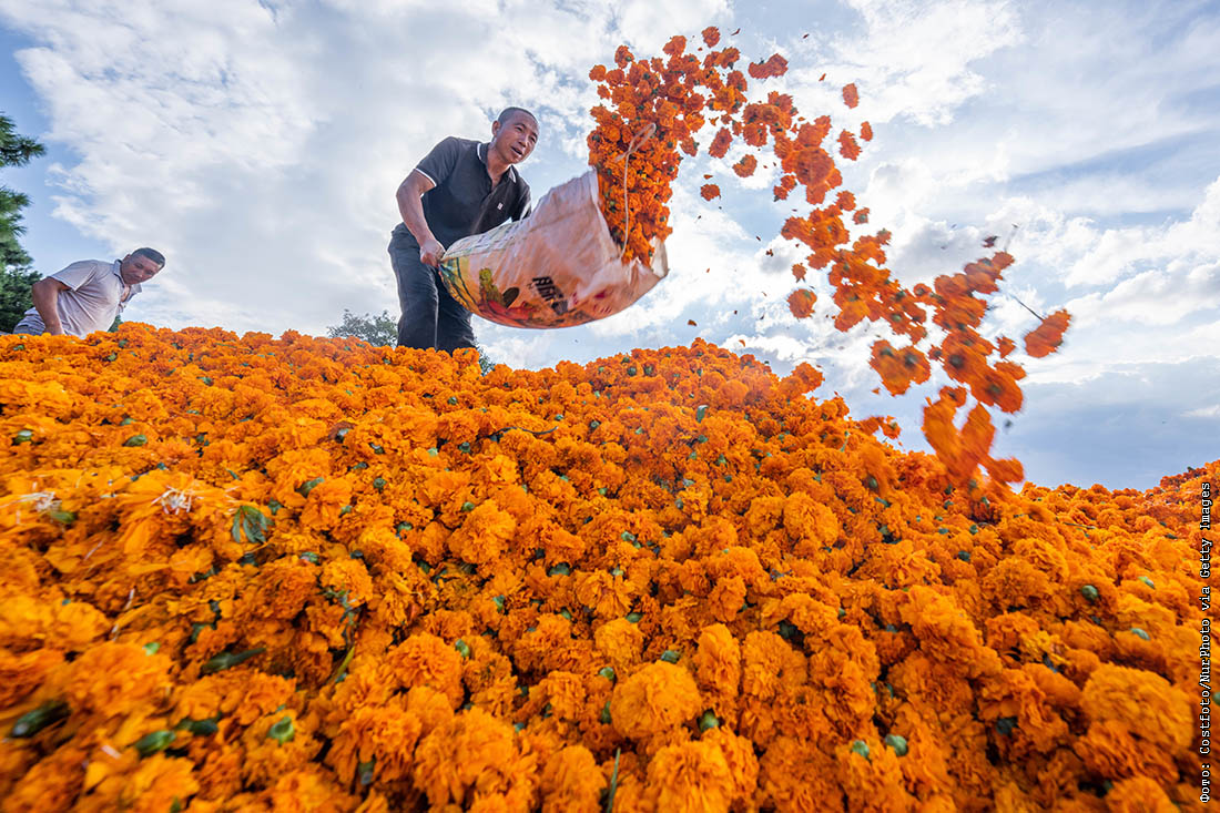 Урожай маргариток собирают в Китае