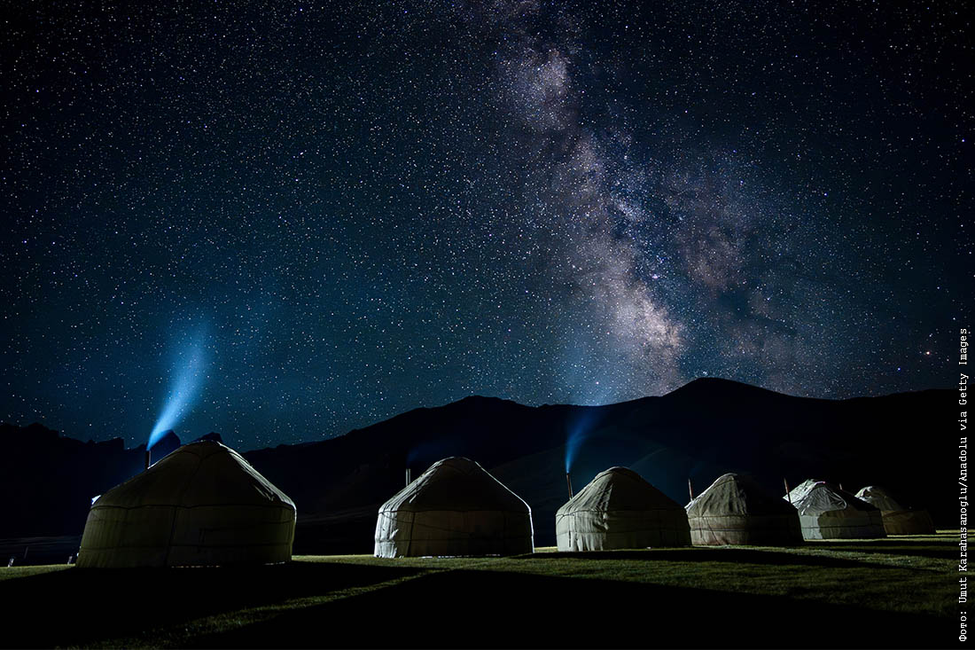 Небо в районе киргизских озер Кёль-Суу и Сонкёль, популярном у любителей астрономии благодаря минимальной засветке и удобным точкам для наблюдения