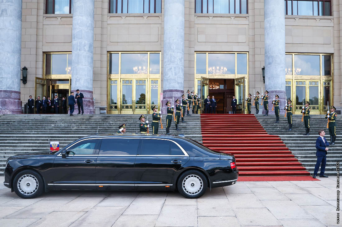 Автомобиль "Аурус" президента РФ Владимира Путина у Дома народных собраний