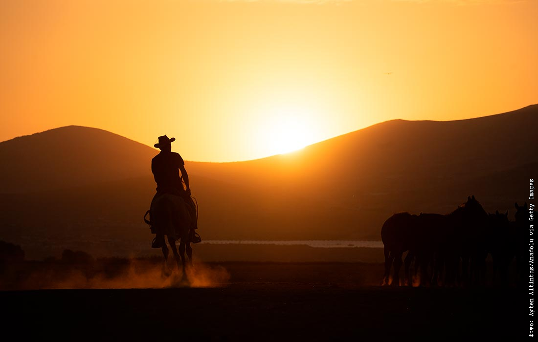 Дикие лошади Анатолии на болоте Хурметчи в Кайсери