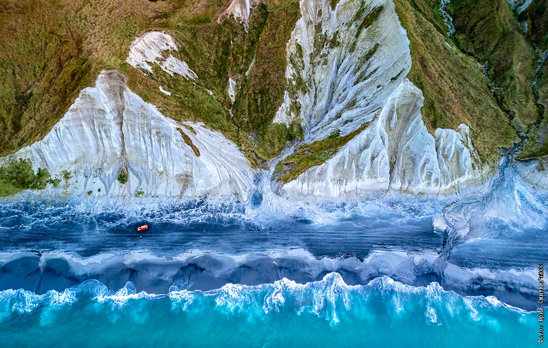 Белые скалы на острове Итуруп в заливе Простор, Сахалинская область