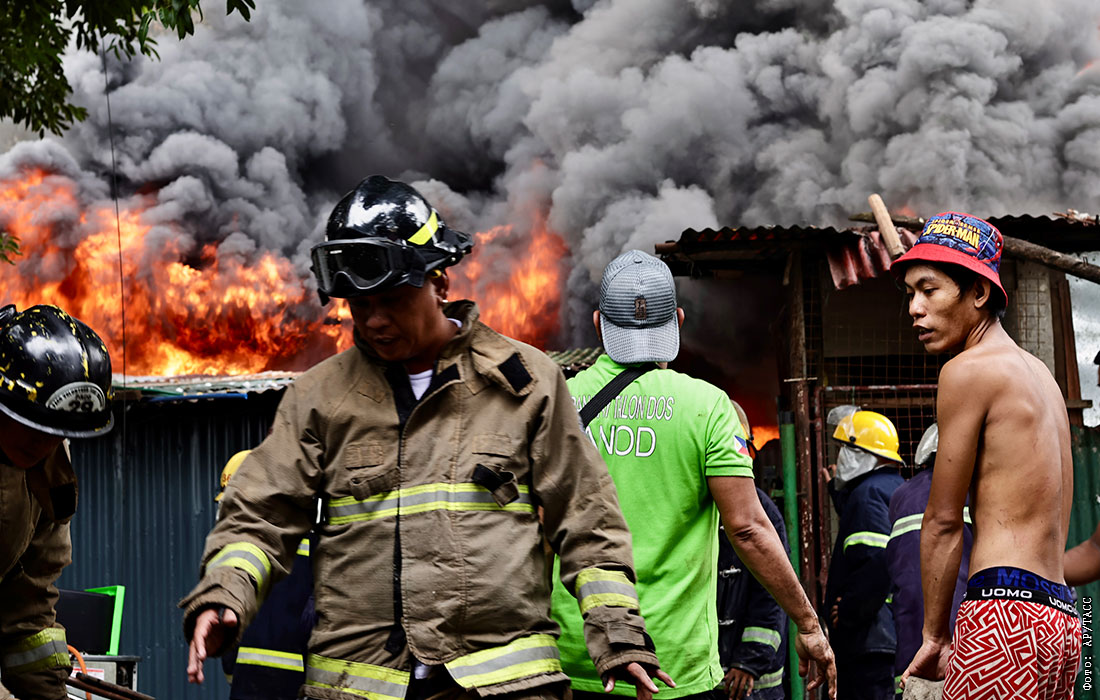 Пожар охватил жилой район в городе Лас-Пинас, Филиппины