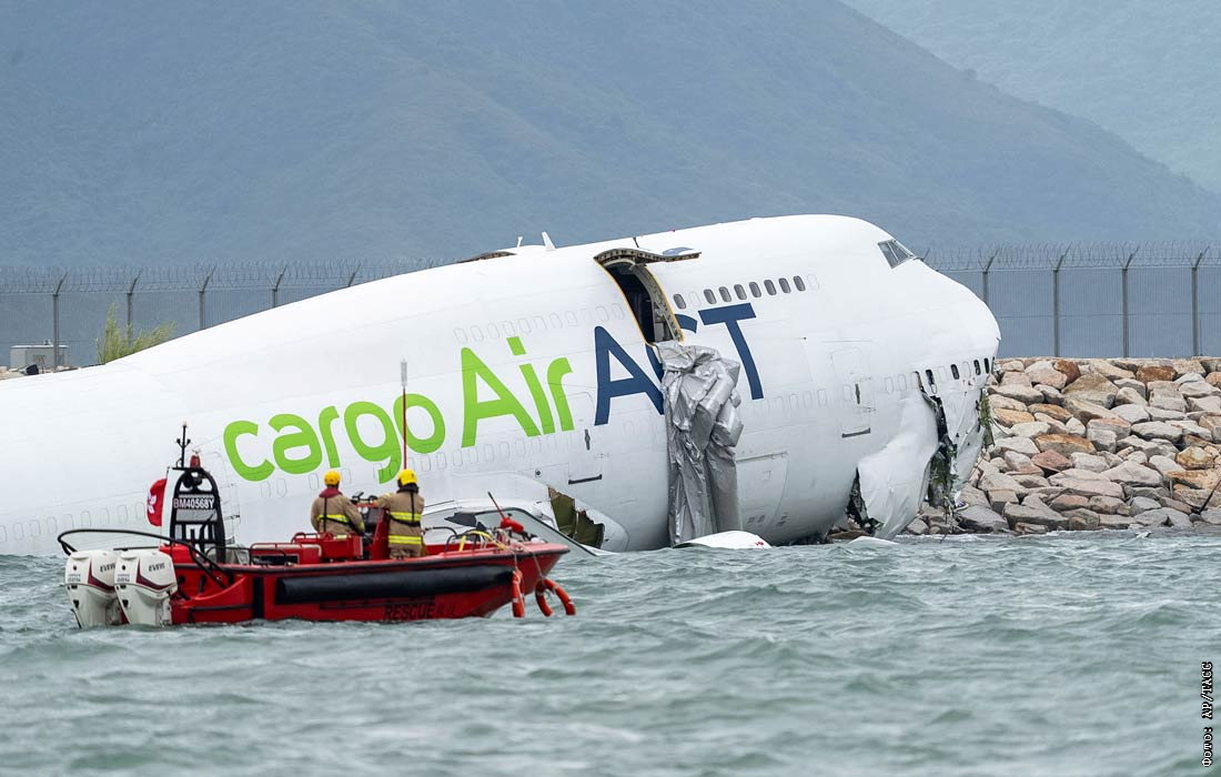 Грузовой самолет авиакомпании Emirates выкатился за пределы взлетно-посадочной полосы в Международном аэропорту Гонконга