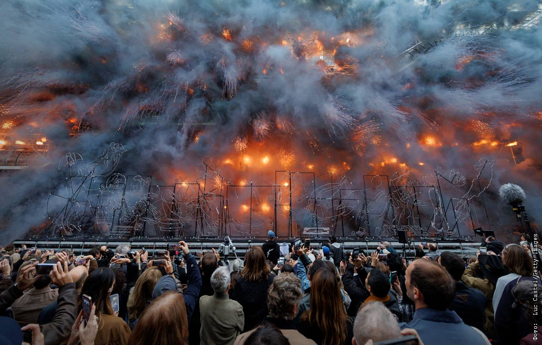 Пиротехническое шоу китайского художника Цай Гоцяна на фасаде Центра Помпиду в Париже, посвященное закрытию здания на пятилетнюю реконструкцию