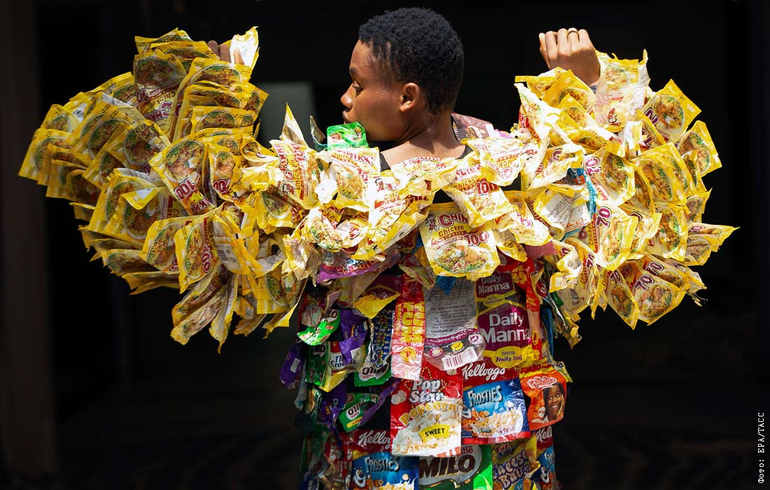 Показ одежды из переработанного пластика с целью привлечения внимания к проблеме загрязнения окружающей среды в Лагосе, Нигерия