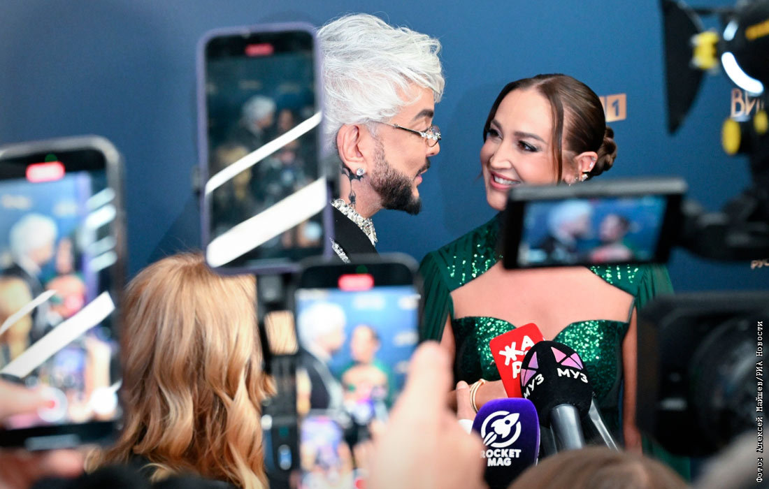 Певцы Филипп Киркоров и Ольга Бузова во время фотосессии на гала-ужине музыкальной премии "Виктория-2026" в Москве
