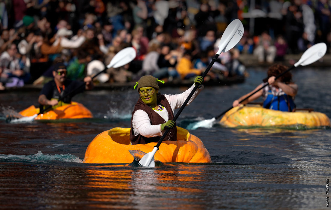 Гонка на гигантских тыквах в американском штате Орегон