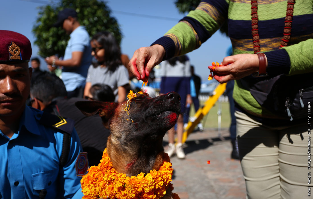 Фестиваль поклонения собакам "Кукур Тихар" в Катманду