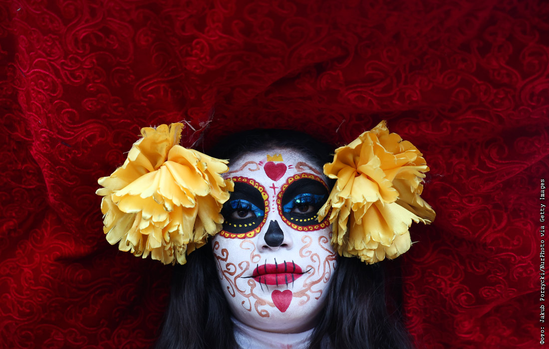 Девушка позирует в образе Катрины в преддверии Дня мертвых в Мехико