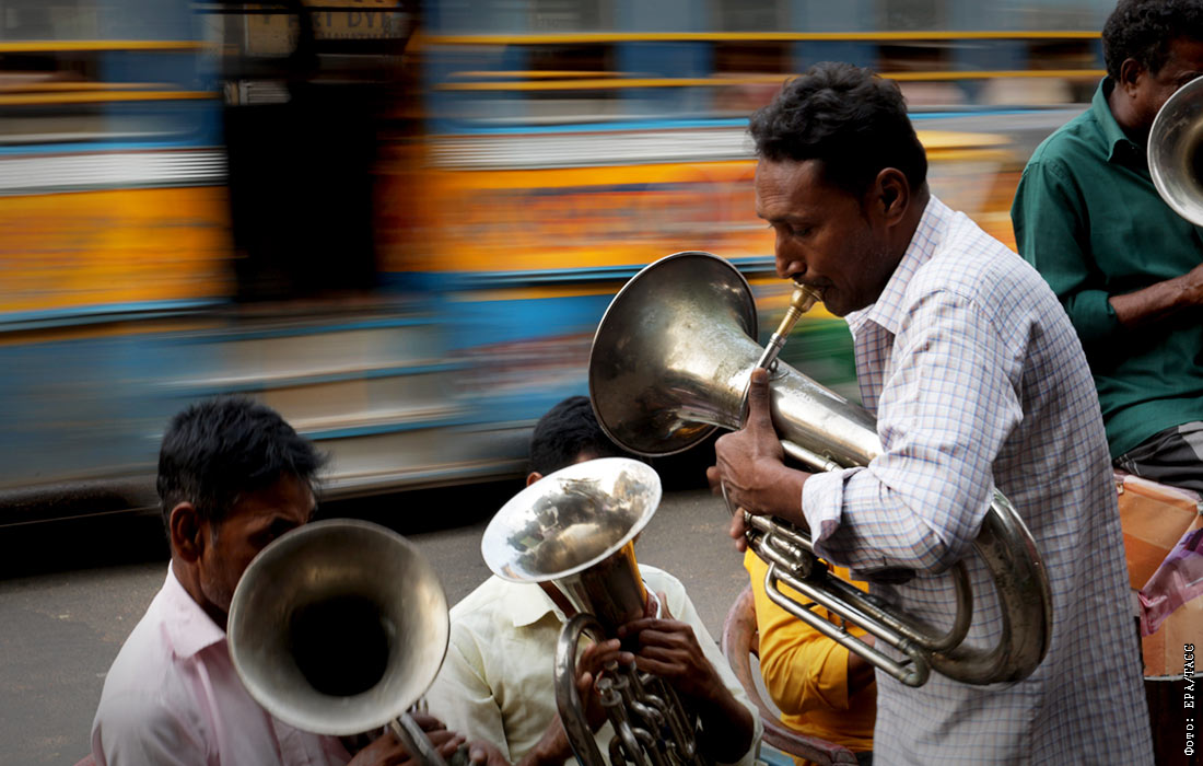 Уличные музыканты в Калькутте, Индия
