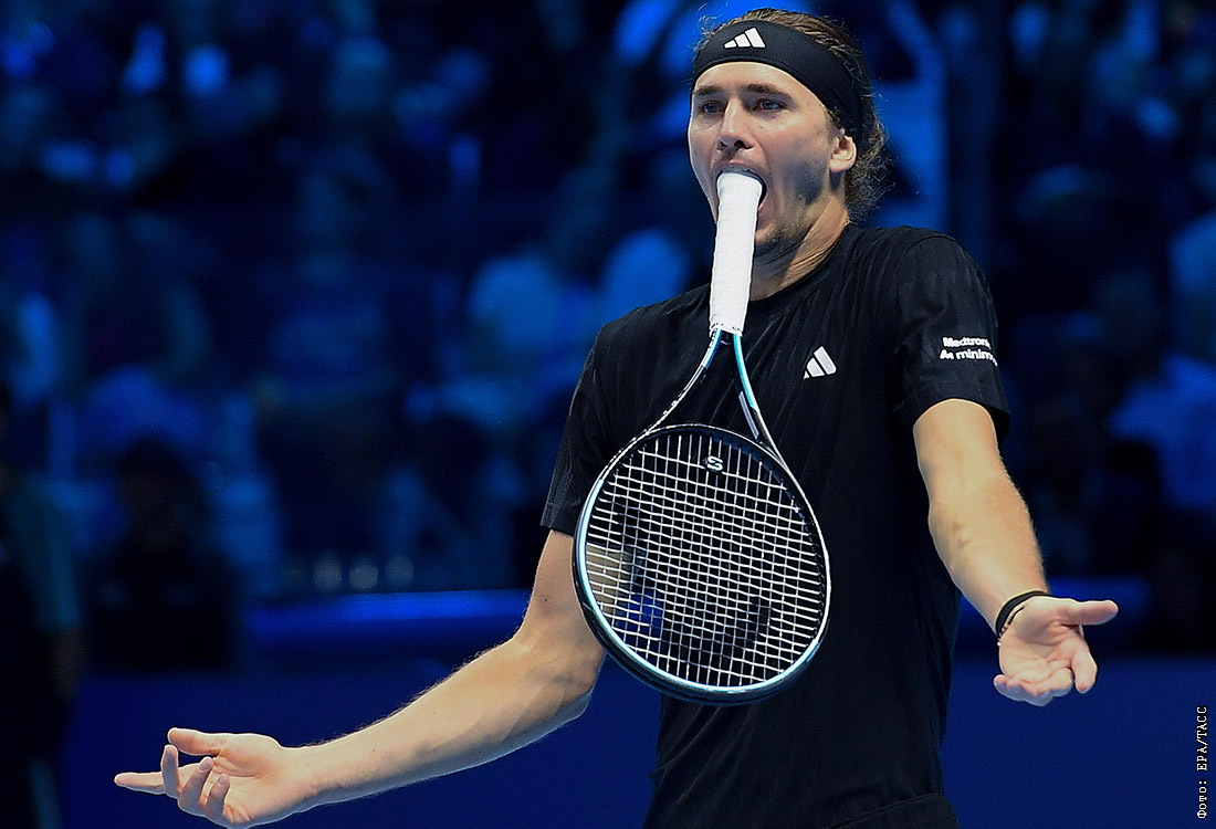 Немецкий теннисист Александр Зверев в матче группового этапа Итогового турнира ATP в Италии