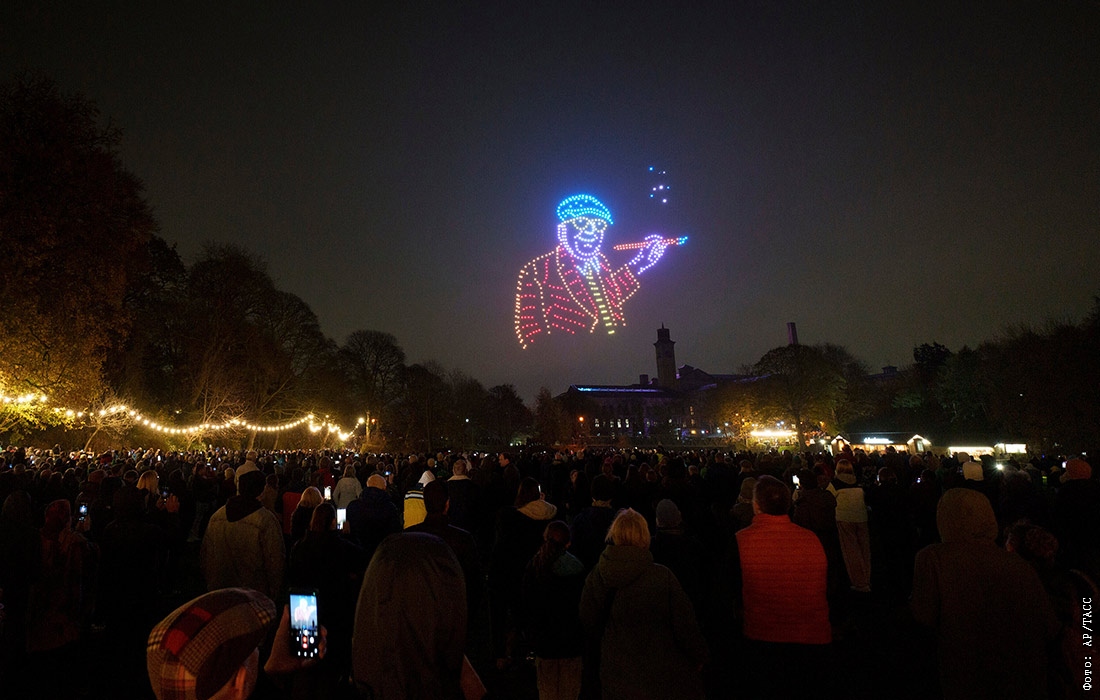 Шоу дронов, посвященное британскому художнику Дэвиду Хокни, в Бредфорде