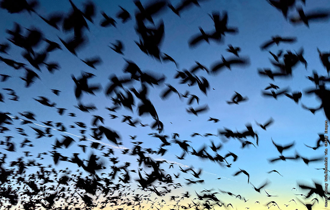 Птицы во время заката в Ардахане, Турция