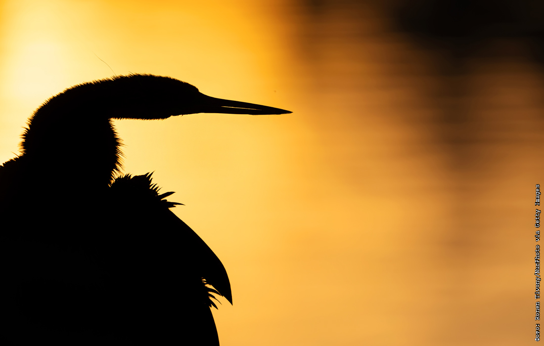 Силуэт американской змеешейки на закате в Орландо, штат Флорида