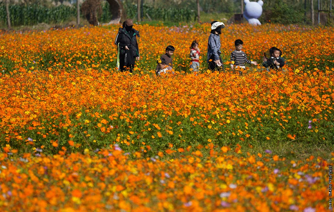 Цветение космеи в китайском Юэцине