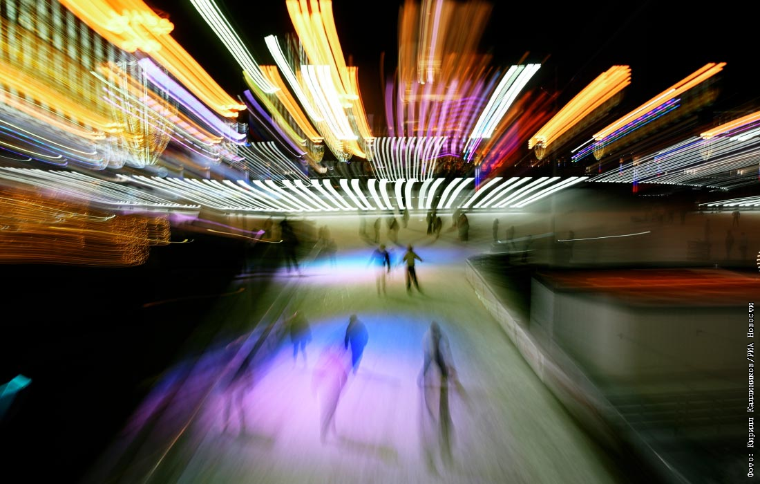 Посетители на катке ВДНХ в Москве