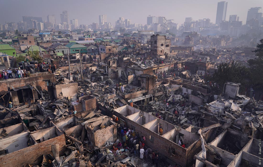 Последствия пожара в трущобах Дакки, Бангладеш