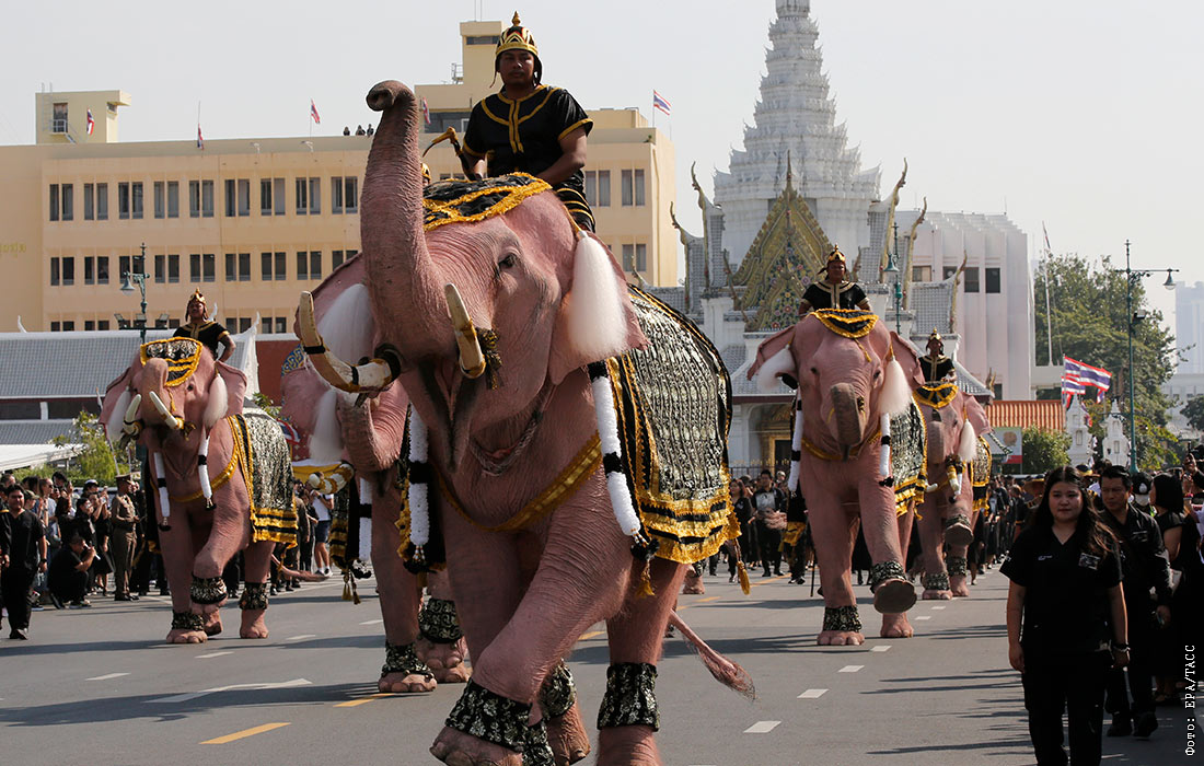 Траурное шествие белых слонов в память о королеве Таиланда Сирикит в Бангкоке