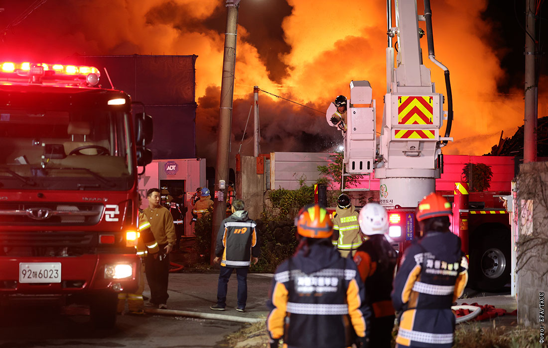 Пожар на складе древесных отходов в южнокорейском Согвипхо