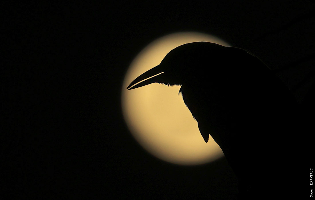 Силуэт вороны на фоне полной луны в Ла-Чоррере, Панама