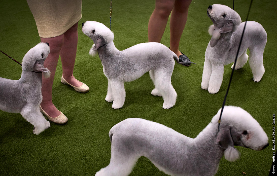 Бедлингтон-терьеры на ежегодной выставке собак Westminster Kennel Club в Нью-Йорке