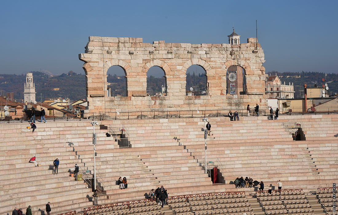Древнеримский амфитеатр "Арена ди Верона" в Италии, на котором пройдет церемонии закрытия зимних Олимпийских игр 2026 года