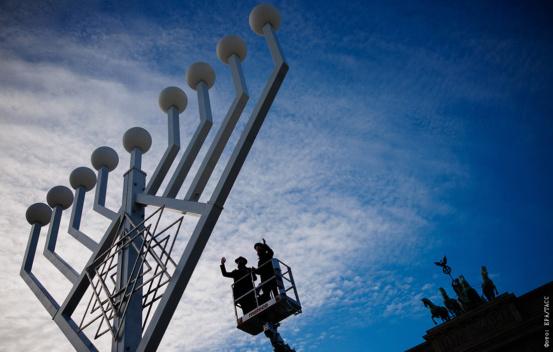 В Берлине по традиции установили Ханукальную менору перед Бранденбургскими воротами