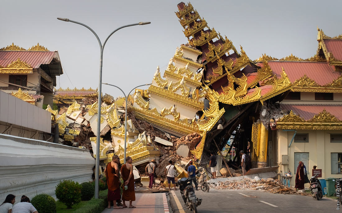 Землетрясение магнитудой 7,7 произошло 28 марта на территории Мьянмы, толчки ощущались в Бангладеш, Индии, Таиланде, Лаосе и Китае. Число погибших превысило 1,7 тыс. человек.