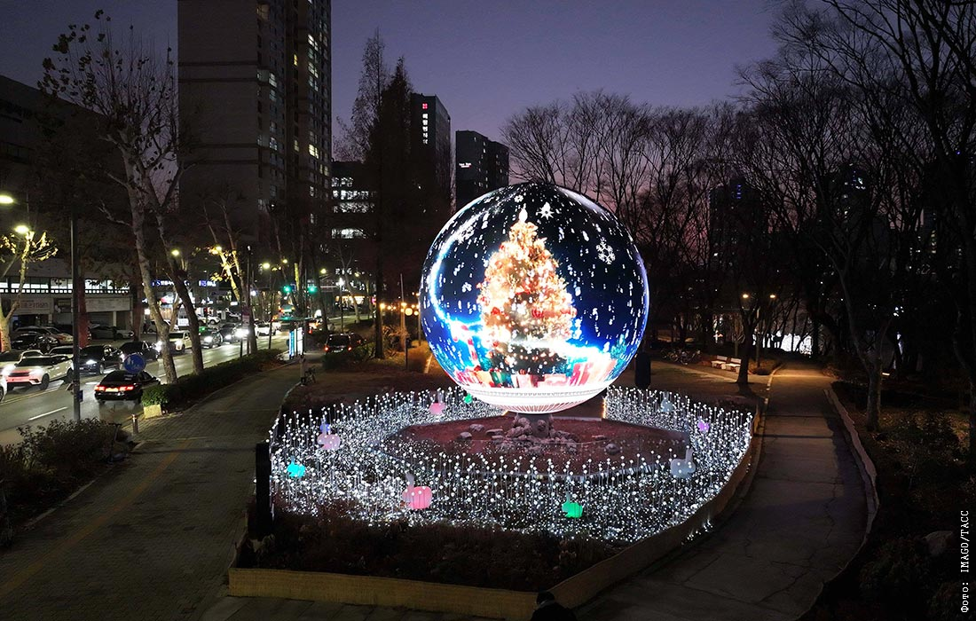Рождественская медиа-инсталляция "Сфера" у озера Сокчхон в Сеуле