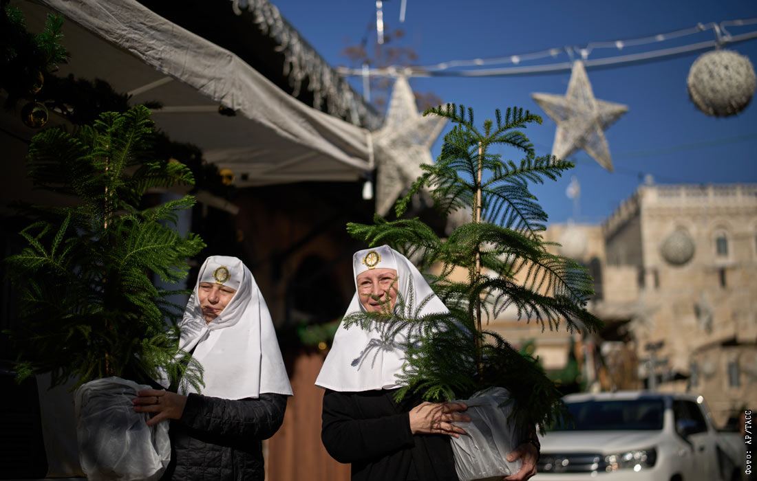 В Иерусалиме у ворот Старого города ежегодно раздают рождественские ели в преддверии праздников