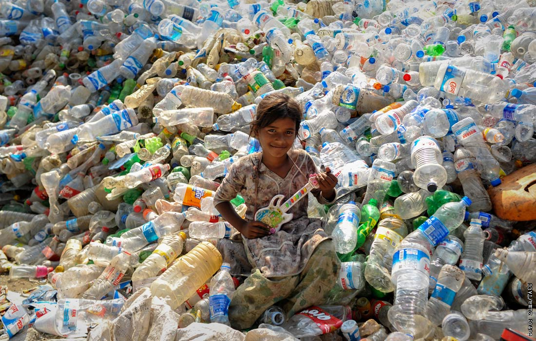 Девочка на заводе по переработке пластиковых бутылок в Бангладеш